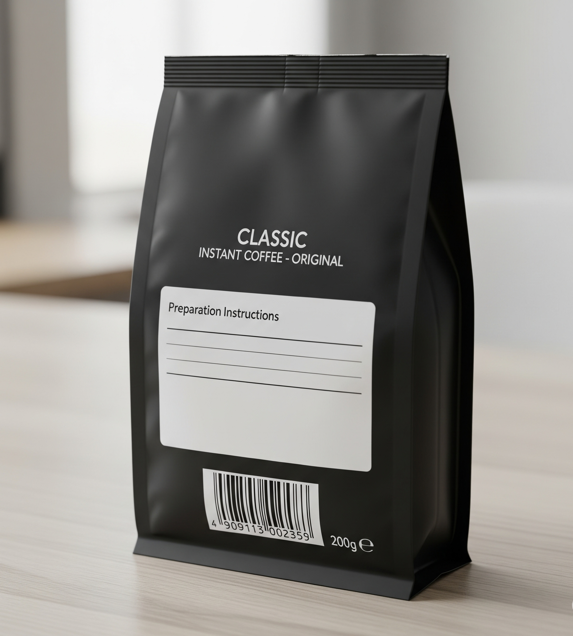 Premium freeze-dried classic instant coffee with full-bodied aroma and balanced flavor. Flavor Profile: Aroma: Chocolate, Nutty; Body: Medium; Acidity: Balanced; Notes: Cocoa, Caramel.