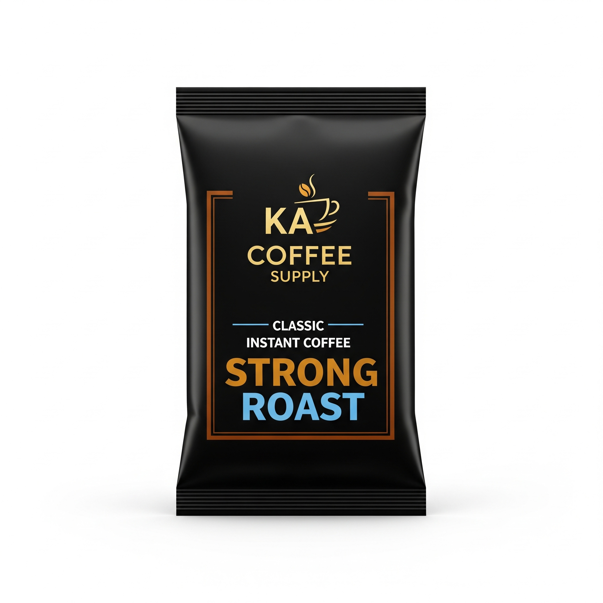 Strong roast freeze-dried instant coffee with full-bodied taste. Flavor Profile: Aroma: Chocolate, Earthy; Body: Full; Acidity: Low; Notes: Cocoa, Earthy.